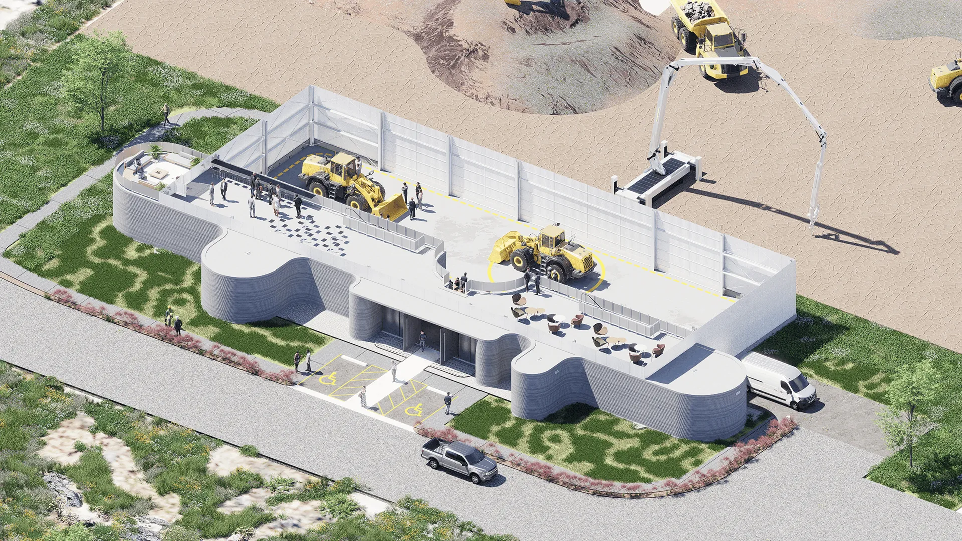 Commercial structure designed to be one of the first multi-story structures to be printed with ICON’s newest technology, the Titan print system.